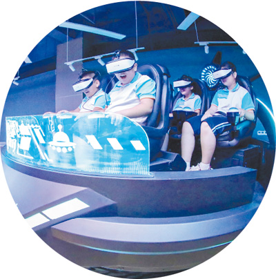 山东省青岛市莱西市河头店镇中心中学学生在体验VR项目。张进刚摄(人民视觉)
