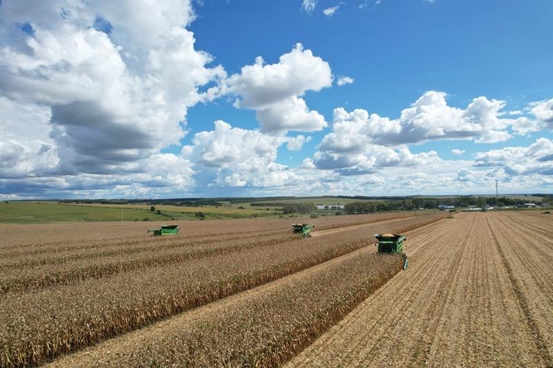 △2025年9月10日,在北大荒集团黑龙江建设农场有限公司第三管理区,大马力机车在进行玉米抢收作业。