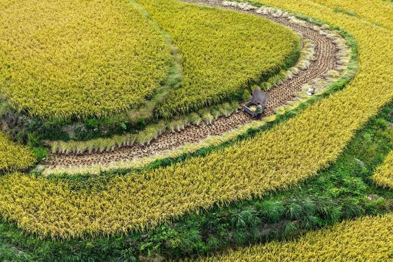 金秋时节,神州大地稻黍金黄、瓜果飘香,呈现出一幅绚丽多彩的丰收盛景。