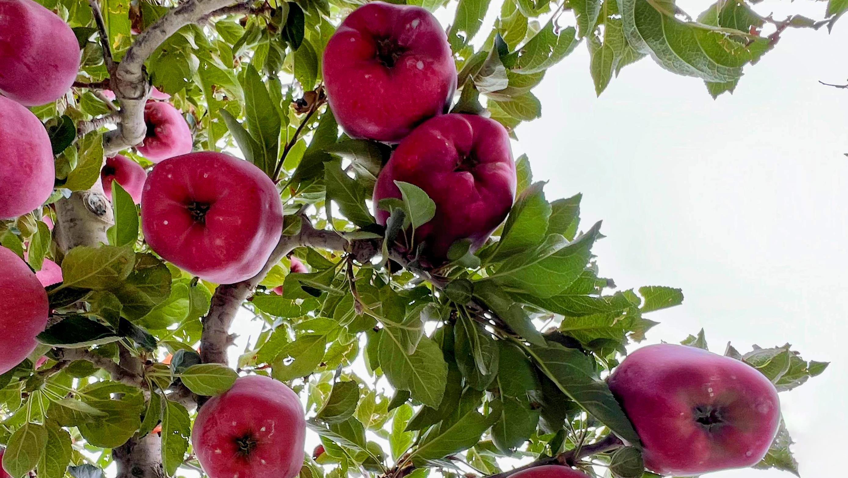 现下,甘肃天水花牛苹果又红了。放眼望去,行行果树整齐排列,红彤彤的花牛苹果挂满枝头。