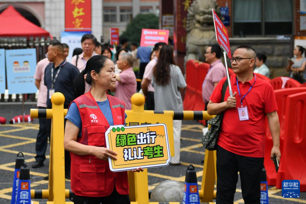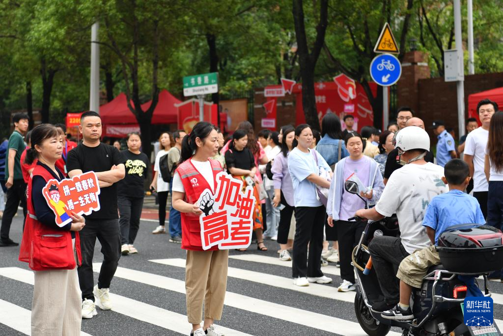 2025年全国高考期间,湖南省长沙市天心区组织青年志愿者,在多个考点为考生和家长提供便利服务。