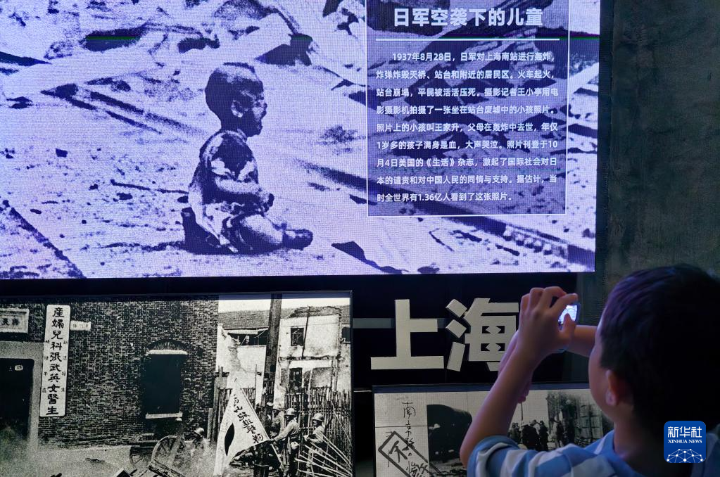 一名小朋友在中国人民抗日战争纪念馆《为了民族解放与世界和平》主题展览参观(7月22日摄)。新华社记者 鞠焕宗 摄