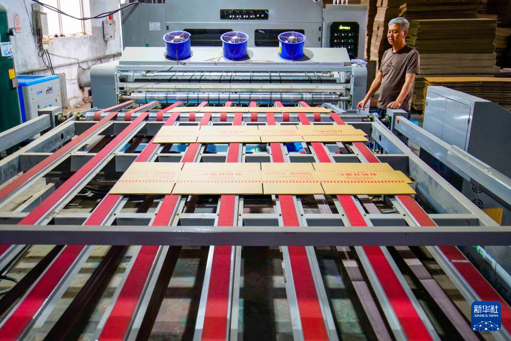 9月15日,工人在河北省遵化市苏家洼镇一家纸箱加工企业车间工作。新华社发(刘满仓摄)