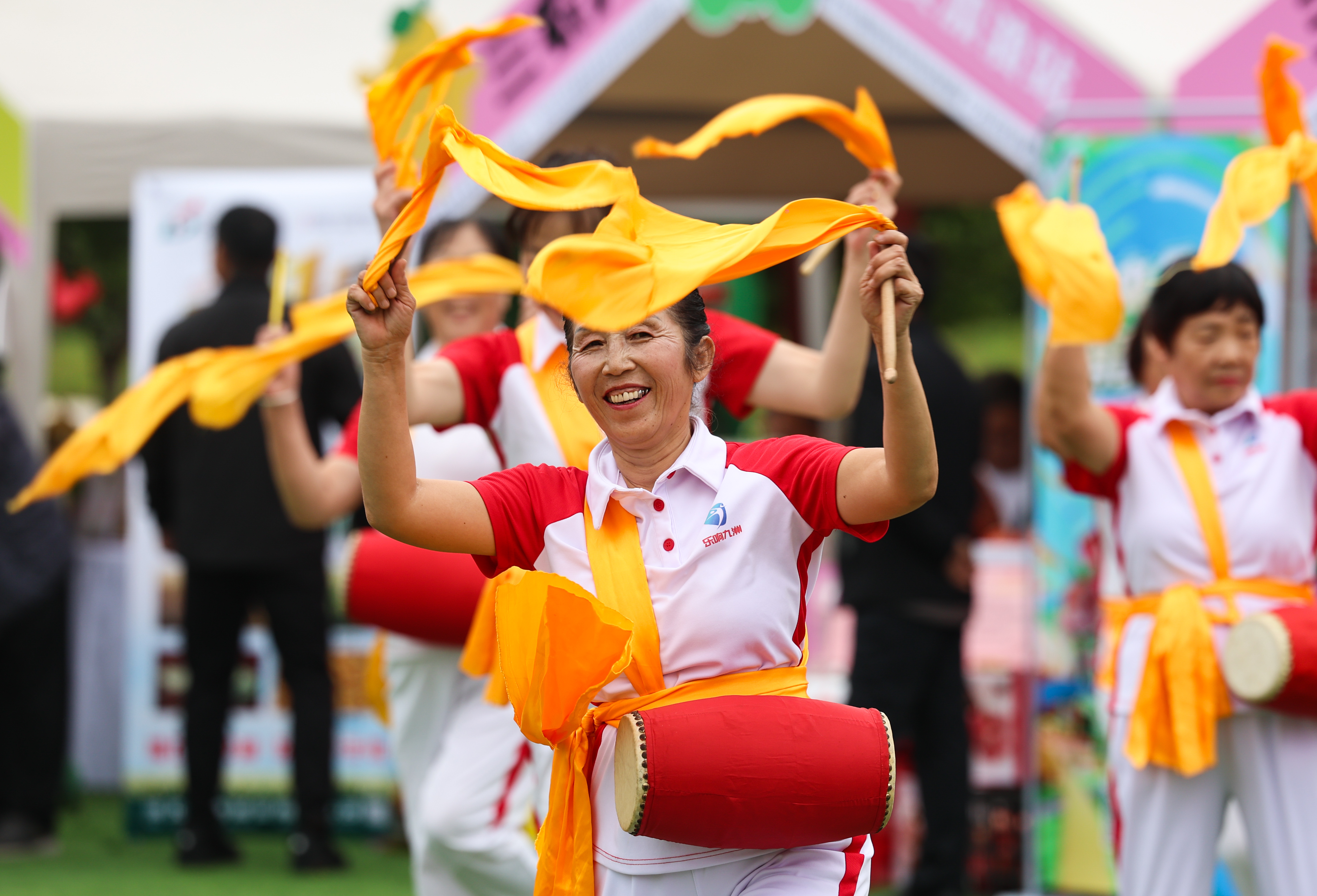 ↑9月23日,在河北省元氏县封龙书院,人们在庆祝活动中扭秧歌。新华社发(梁子栋摄)
