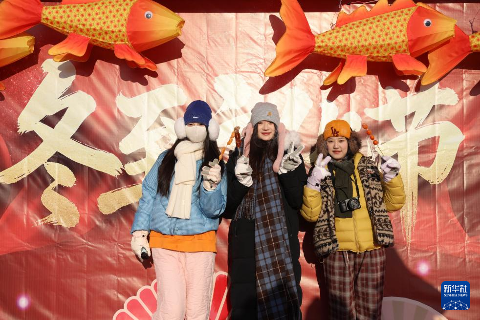 12月21日,游人在北极村活动现场留影。新华社发(邵天李摄)