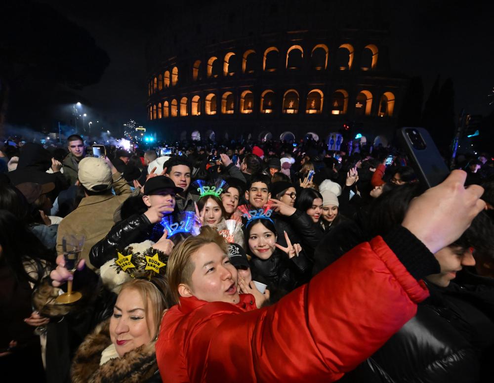 2026年1月1日,人们在意大利罗马斗兽场迎接新年。