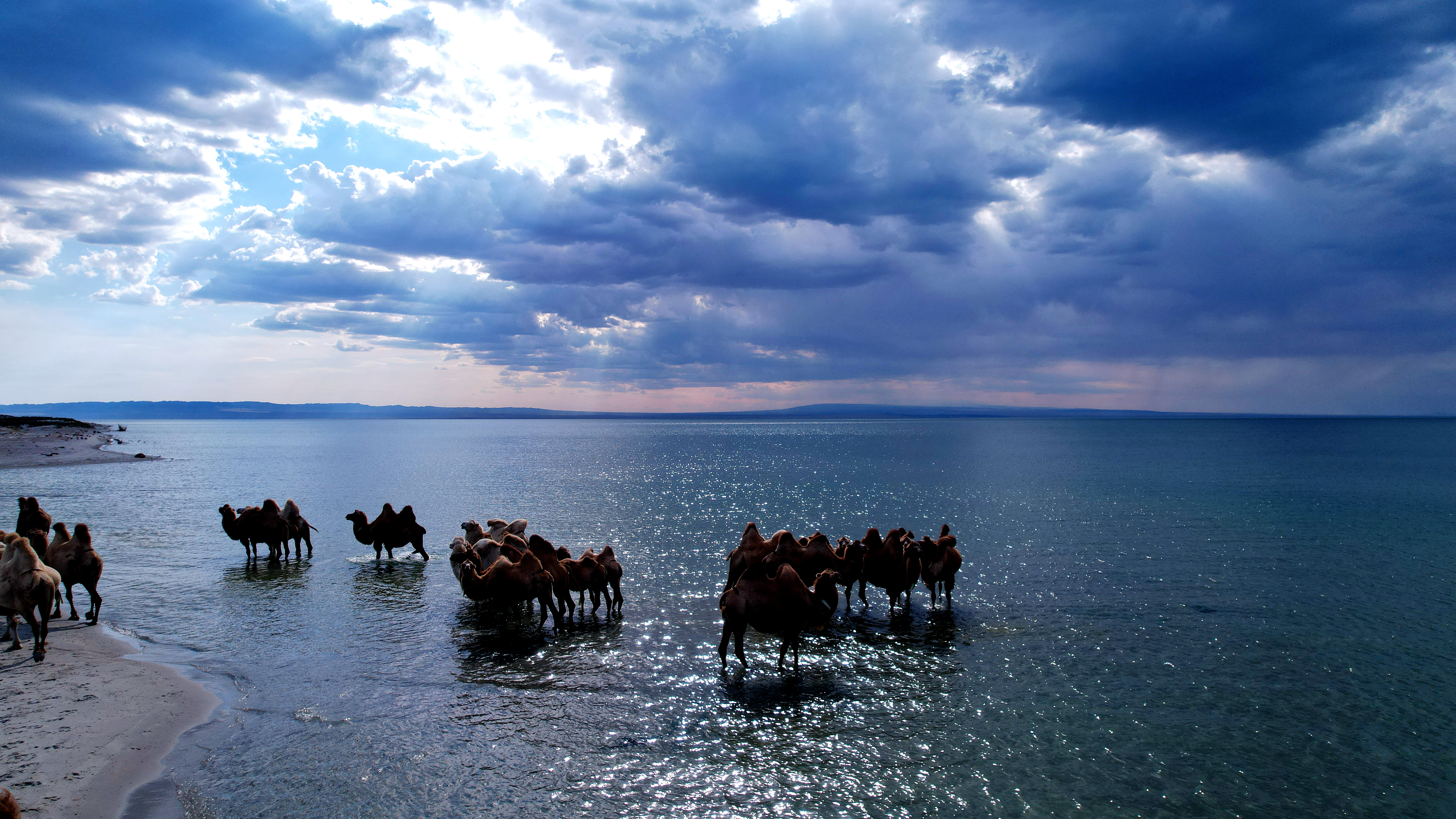 阿勒泰新闻网-阿勒泰地区融媒体中心(记者 阿尔达克·拜斯汗) 8月25日,在乌伦古湖畔,一群骆驼悠然饮水休憩。它们高大的身影与波光粼粼的湖面构成了一幅静谧而壮美的生态画卷。