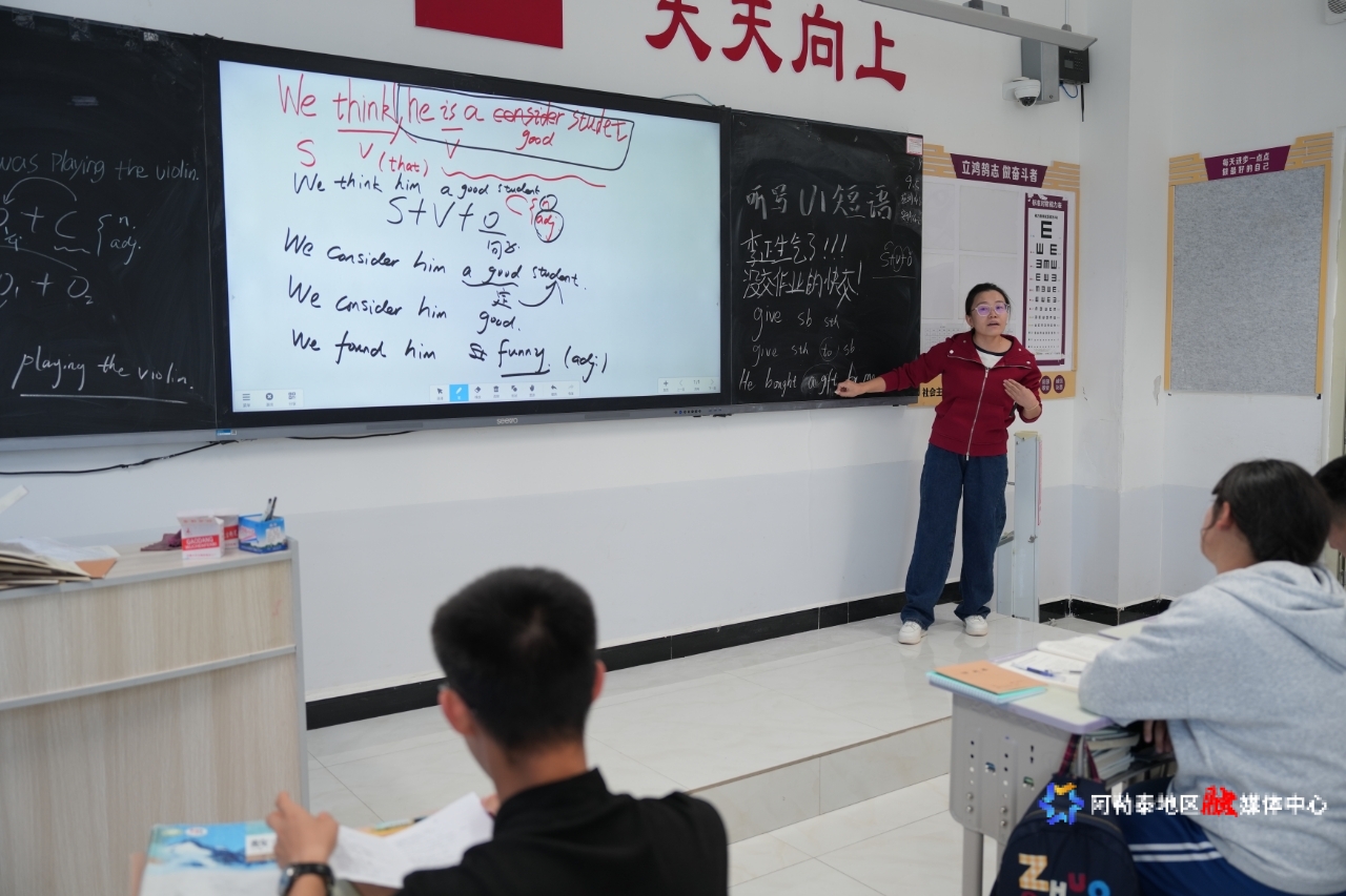 吉木乃县高级中学英语老师邓阳伟 正在给学生上课。