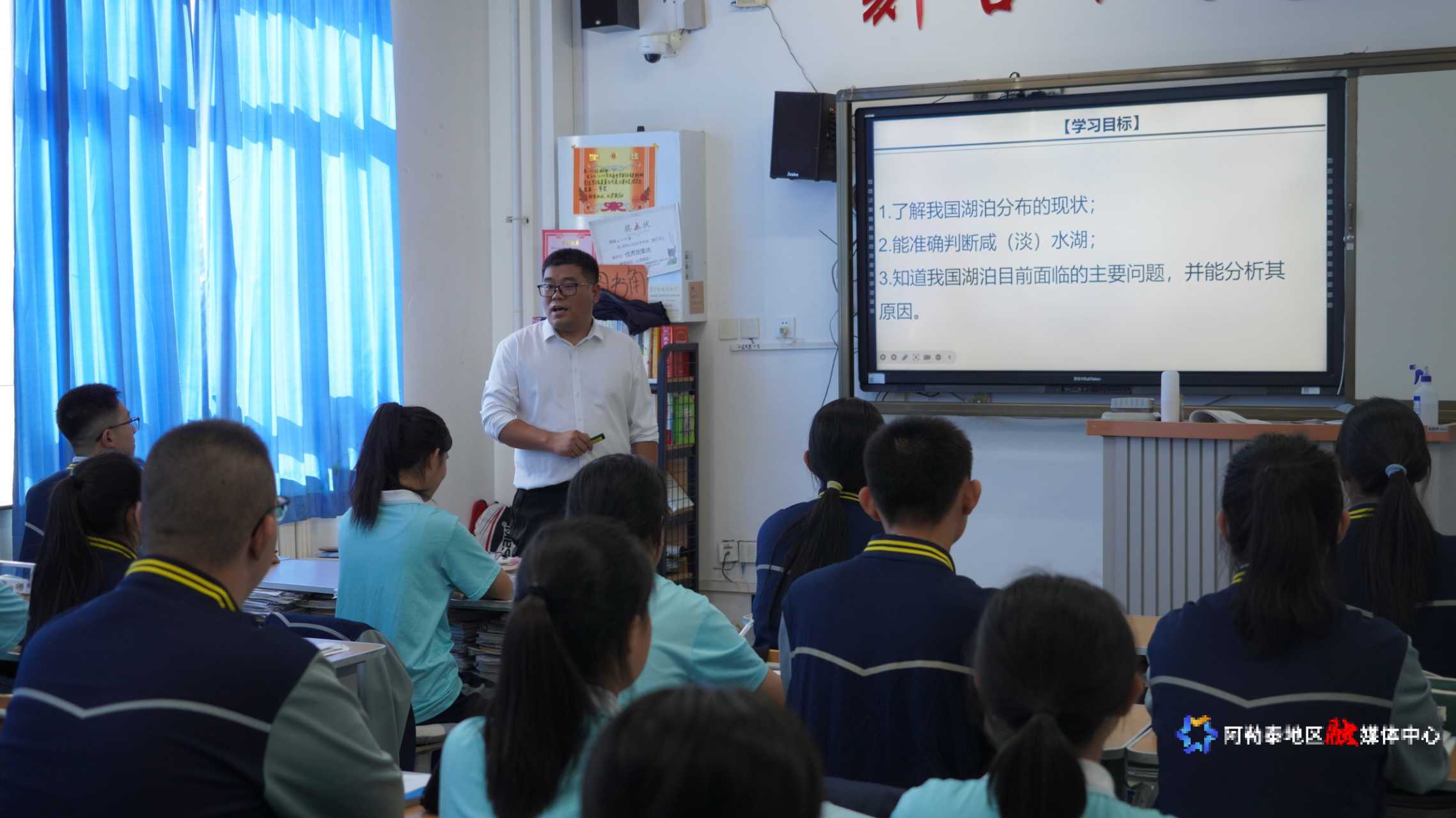 阿勒泰地区第二高级中学,地理老师正在为学生讲解地理知识。