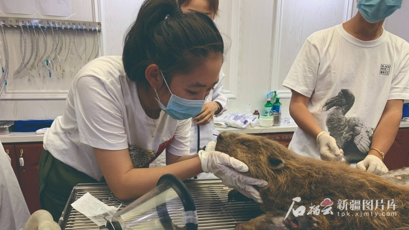 初雯雯(左一)和志愿者正在救助受伤的蒙新河狸。阿勒泰地区自然保护协会供图