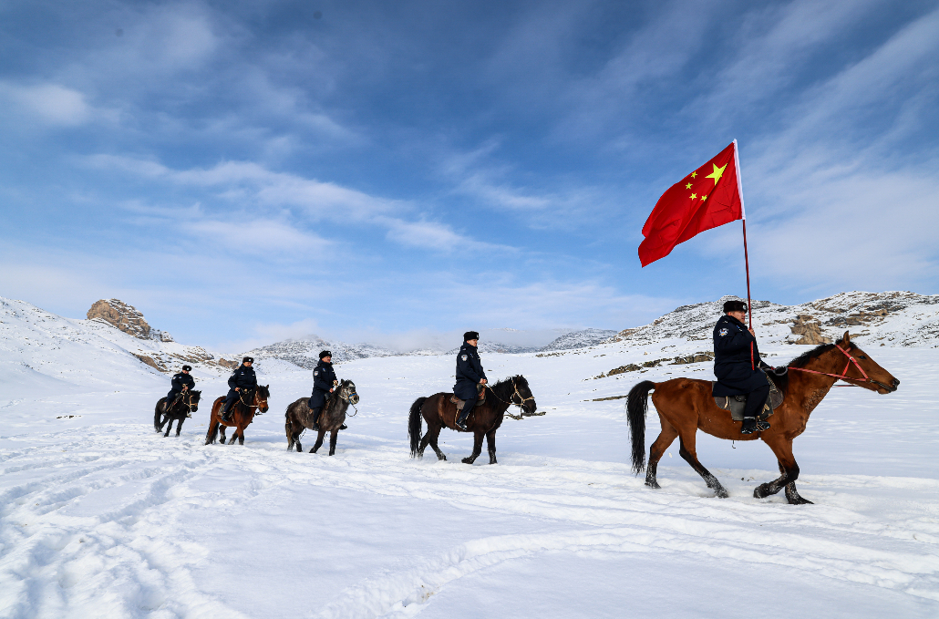 新疆阿勒泰:戍边民警踏雪巡边