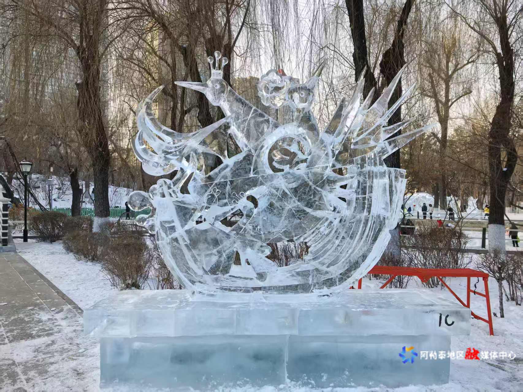 冰雕作品《莺歌燕舞迎盛世》。