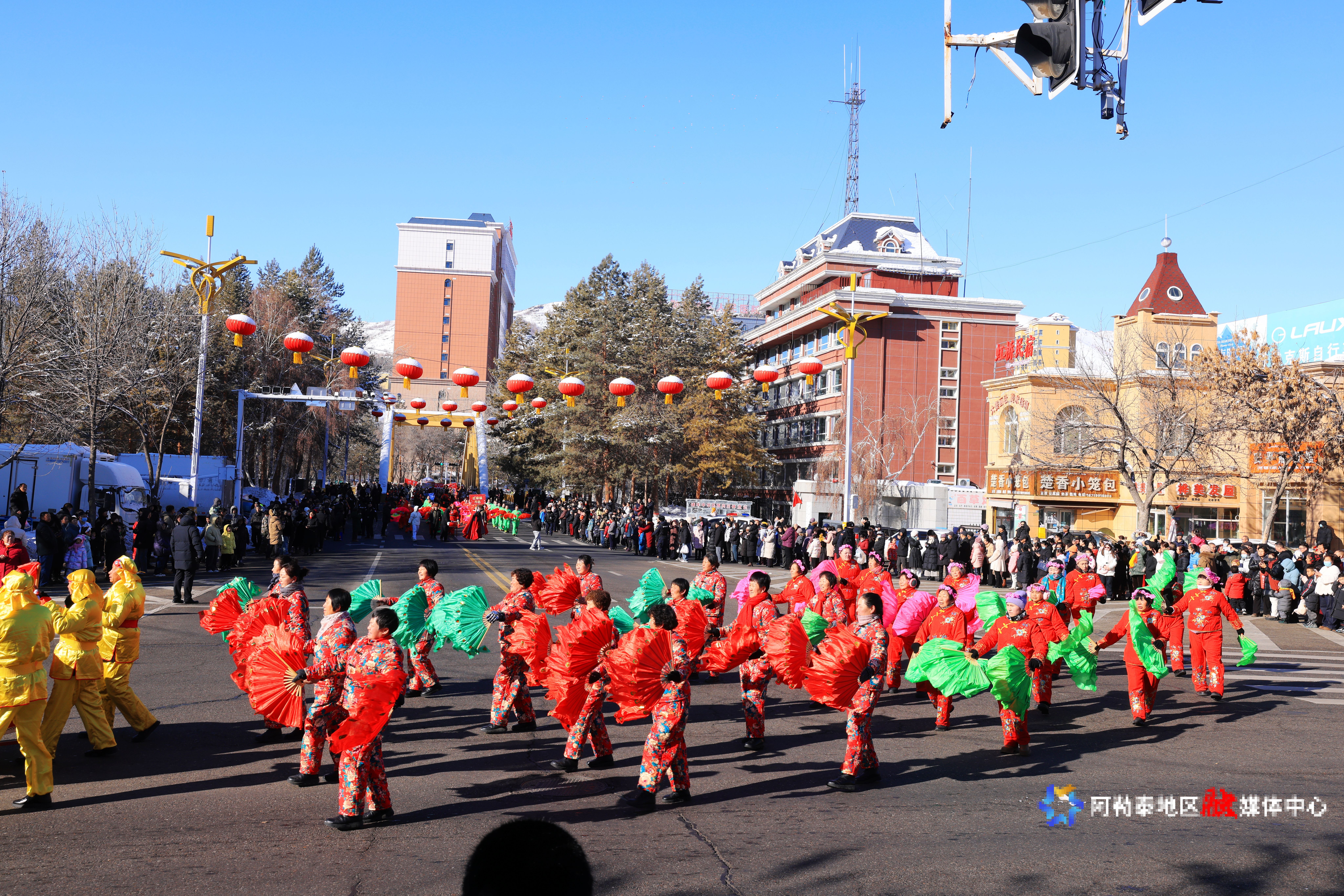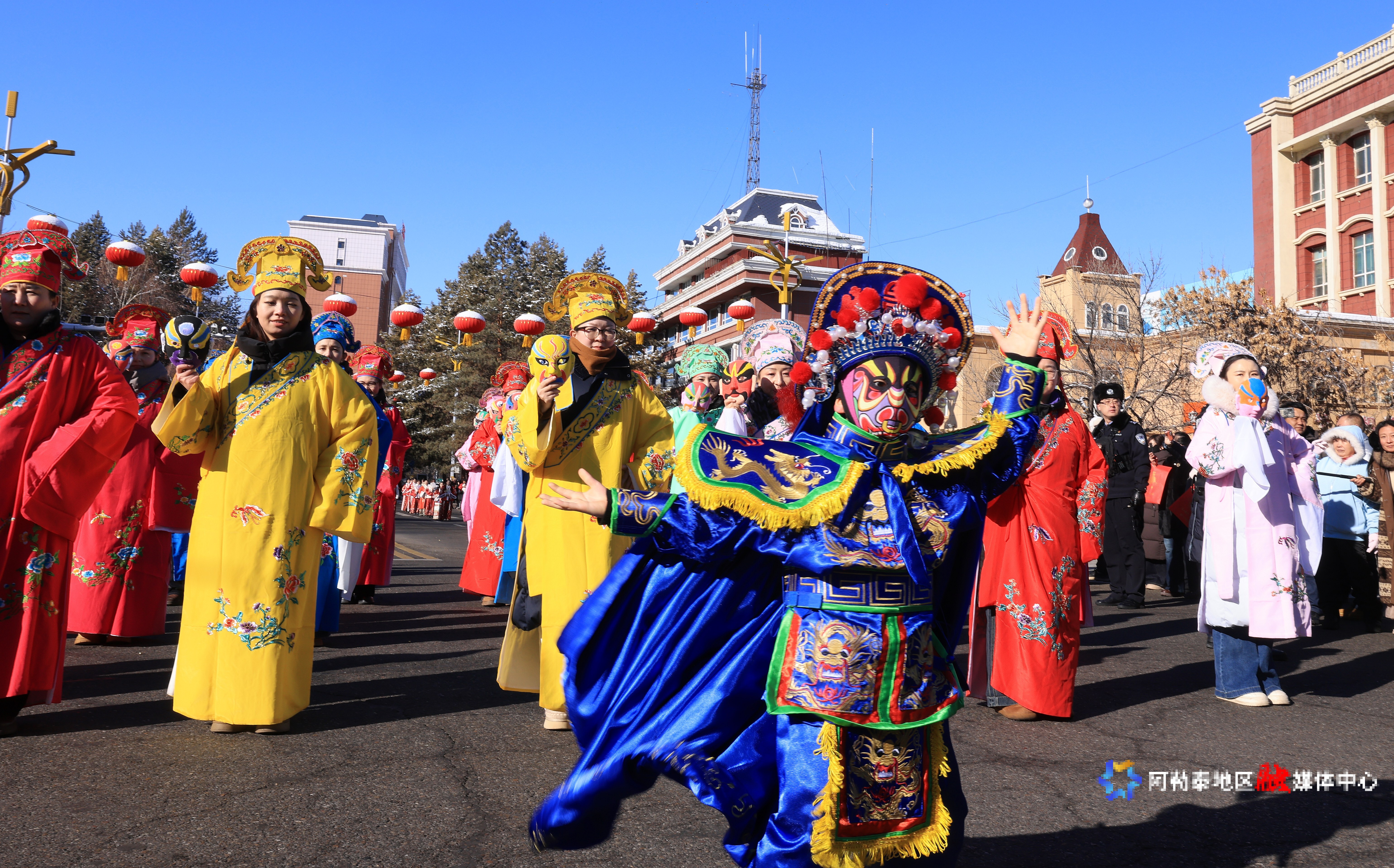 2月14日,阿勒泰市“雪都阿勒泰·社火迎新春”社火表演活动火热上演。记者 阿尔达克·拜斯汗摄