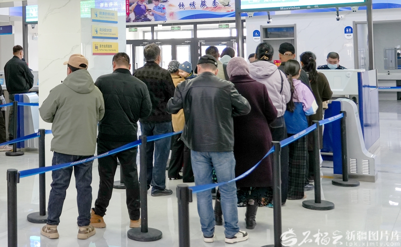4月1日,入境旅客在吉木乃口岸办理边防检查手续。陈亚伟 摄