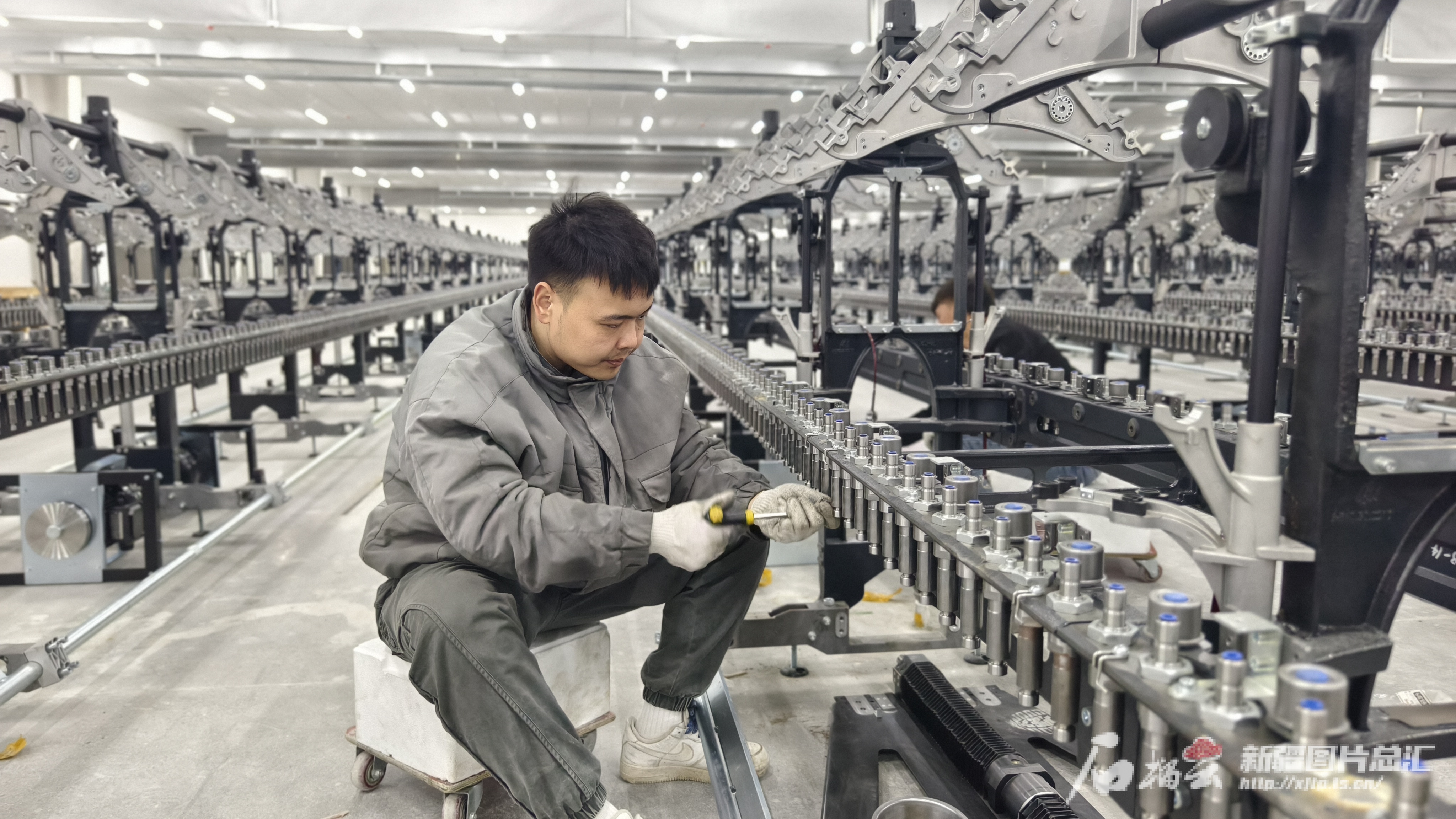 2月20日,新疆华泰实业发展有限公司工人在车间安装细纱机机架(资料图)。