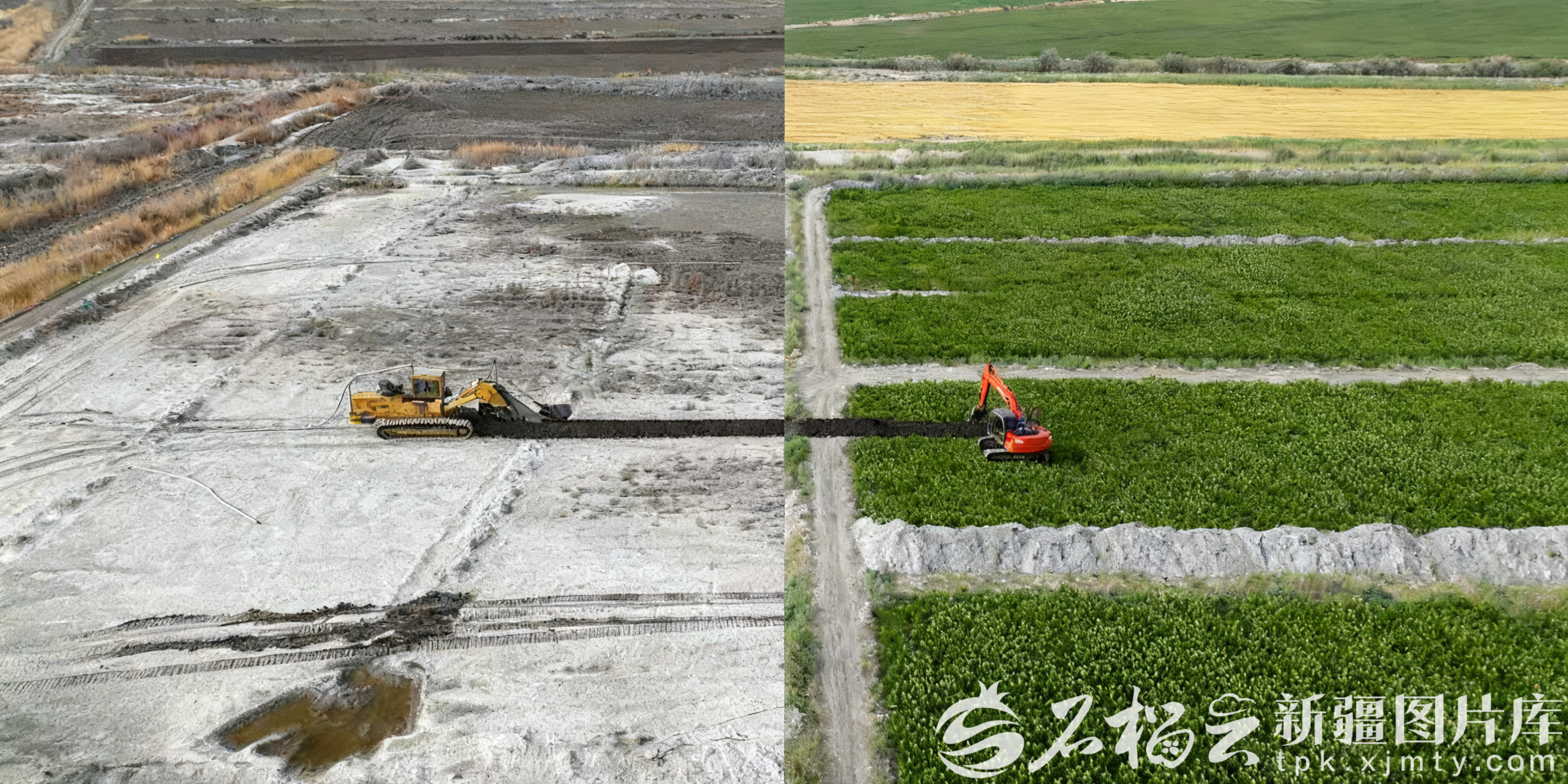 博湖核心示范基地改良前后的对比图。(资料图)图/自治区农科院提供