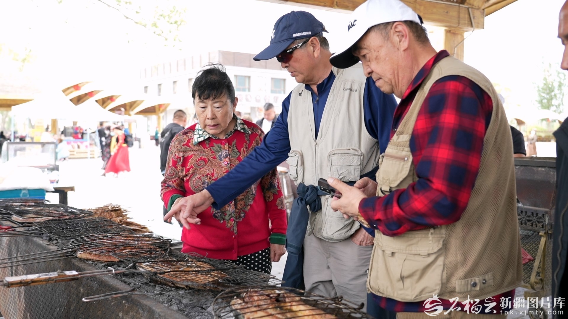 游客在挑选烤鱼。特巴依尔 摄