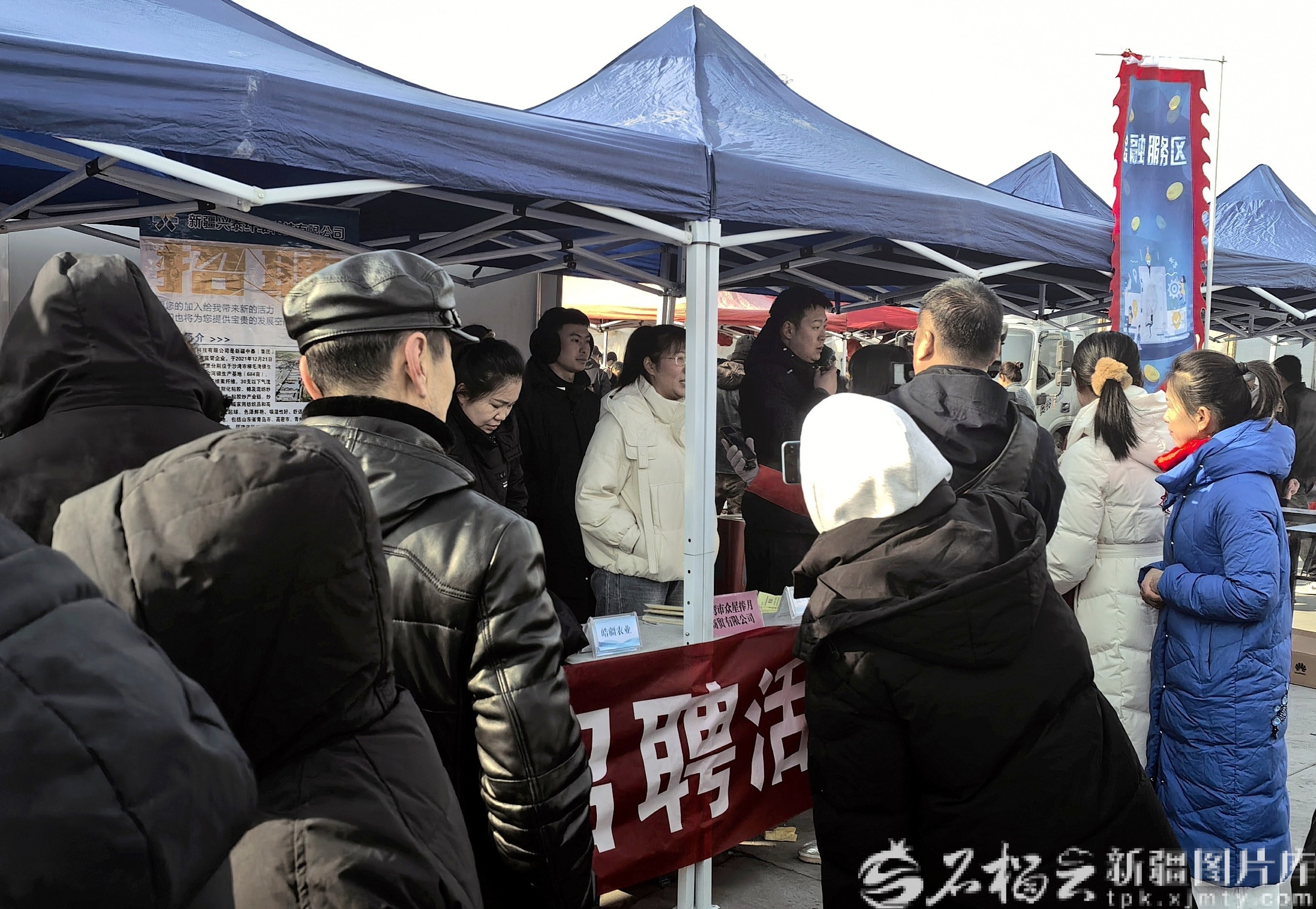 2月4日,沙湾市举行第二届“骏马迎春·年货纳福”新春年货会,沙湾市人社部门搭建的招聘专区吸引了很多求职者。沙湾市人社局供图
